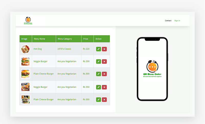 • Customers can view menu by scanning the QR code from mobile